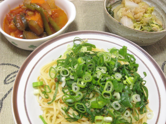 昨日の夕飯(7/16):ねぎ塩のパスタ他