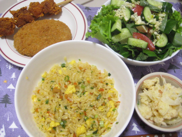 これに画面に入りきらなかったんですが、副菜としてタラコ入りポテトサラダに、中華スープで。