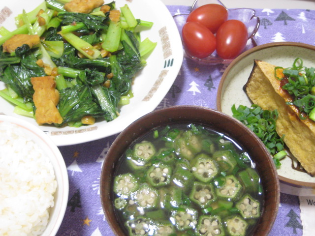 他、副菜として冷やしトマトと、汁物にオクラの味噌汁で。