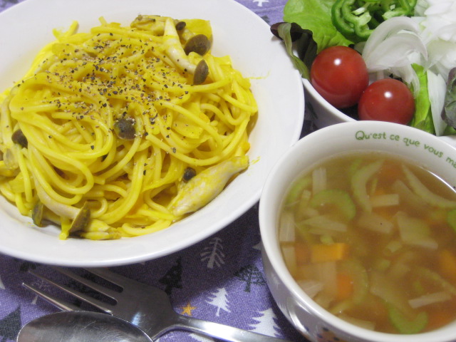 昨日の夕飯(4/18):カボチャのクリームパスタ他