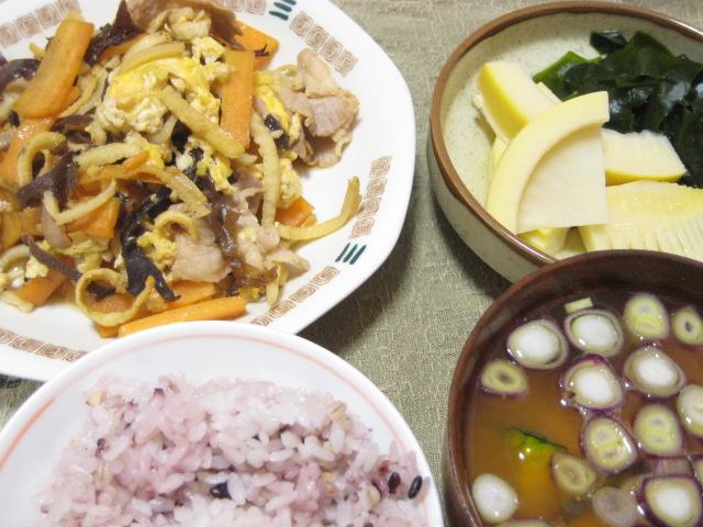 昨日の夕飯(4/19):切り干し大根と豚肉の中華風炒めもの他