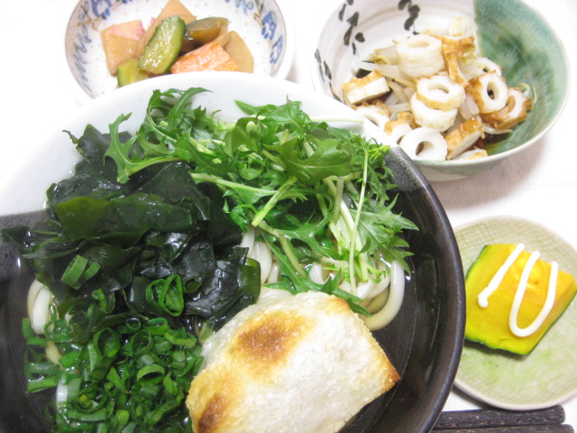 昨日の夕飯(3/12):餅入りわかめうどん他