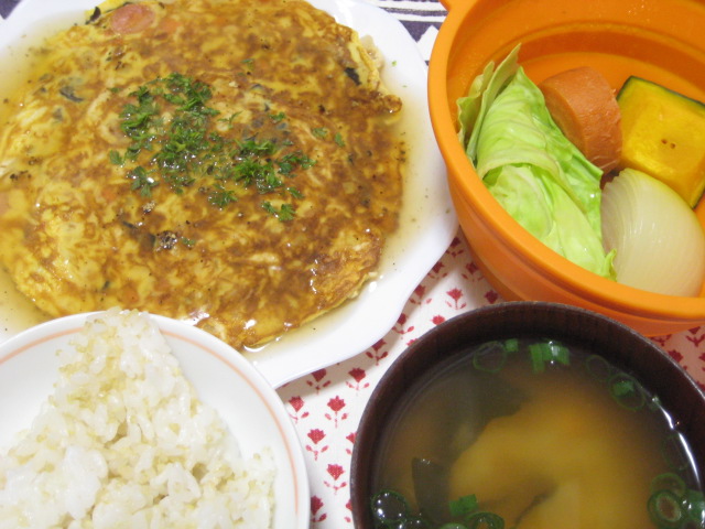 昨日の夕飯(3/14):切り干し大根のあんかけ卵焼き(洋風)他