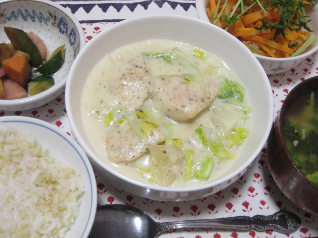 昨日の夕飯(3/15):白菜と鶏むね肉のクリーム煮他