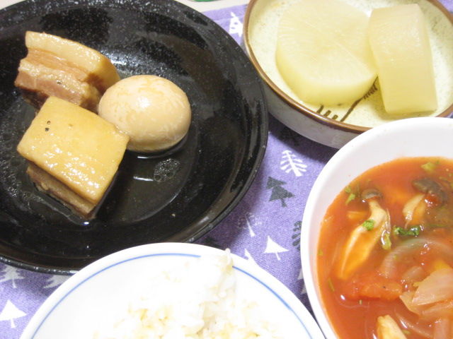 他に副菜でふろふき大根、スープに野菜たっぷりのトマトスープで。