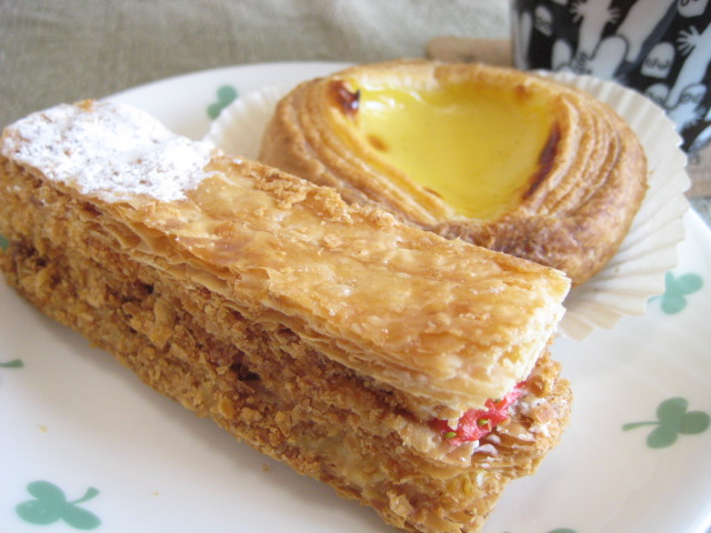 この日は季節限定品のストロベリーミルフィーユと、定番商品のエッグタルトを(どっちも食べるのは初めて)。