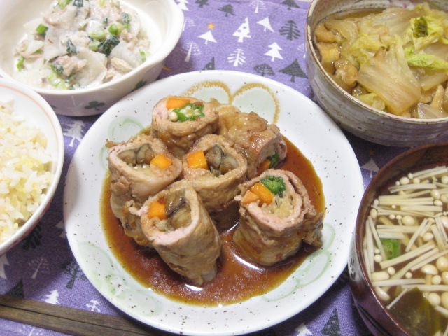 - 12/23 昨日の夕飯(12/22):豚肉の野菜巻き他