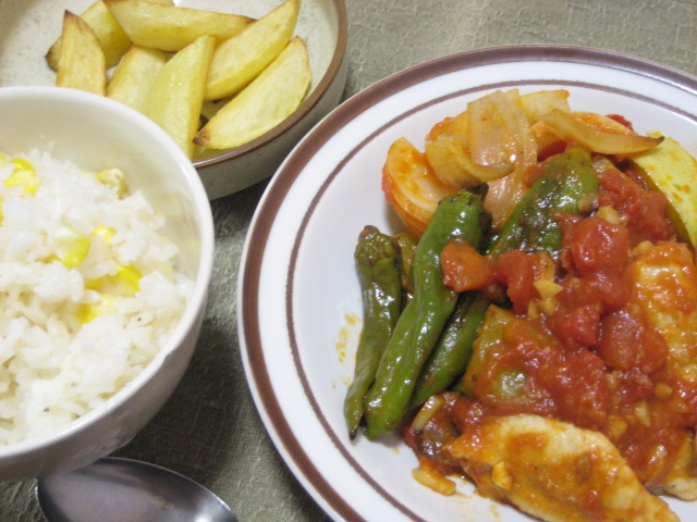 - 09/15 昨日の夕飯(9/14):鶏むね肉と野菜のトマトソース煮他