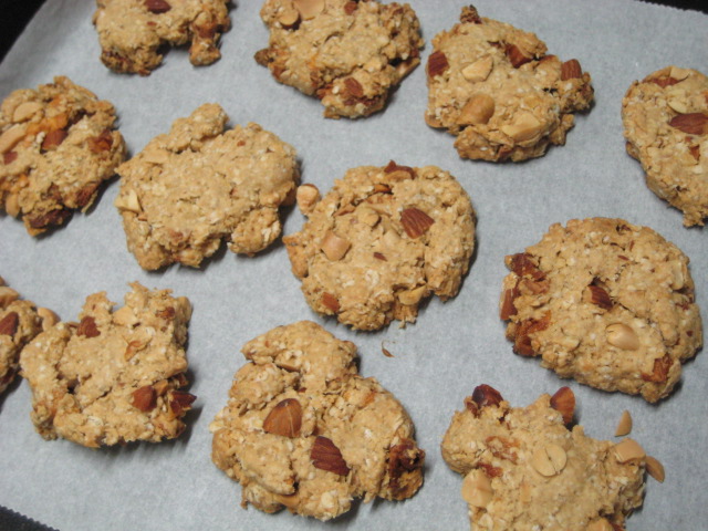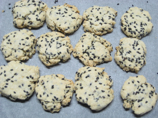 次に作ってみたのは、黒ゴマとおからのクッキー。本にあったおからのクッキーと粉の配合は一緒なんですが、あっちはゴマじゃなかった所為か、味はいいんですが、クッキーにしては結構硬いのができたような…。