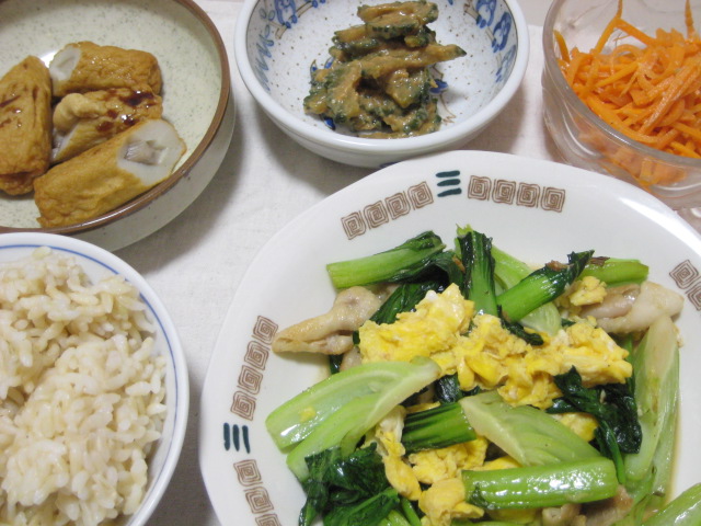 - 08/28 昨日の夕飯(8/27):青梗菜と鶏皮と卵のオイスターソース炒め他
