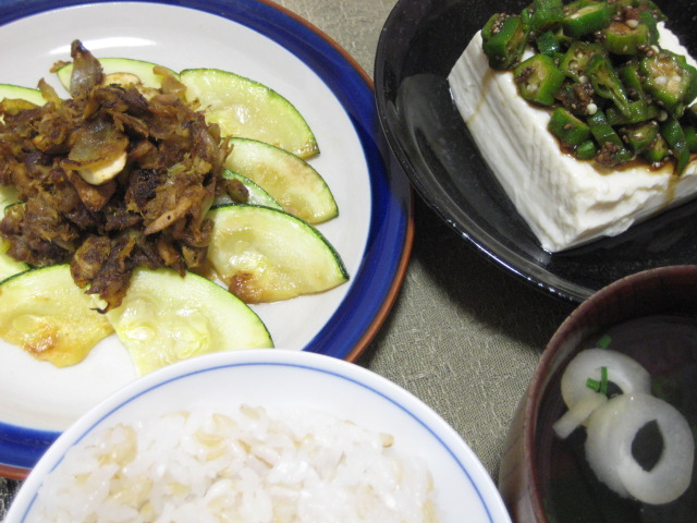 - 06/14 昨日の夕飯(6/13):焼きズッキーニのドライツナカレー載せ他