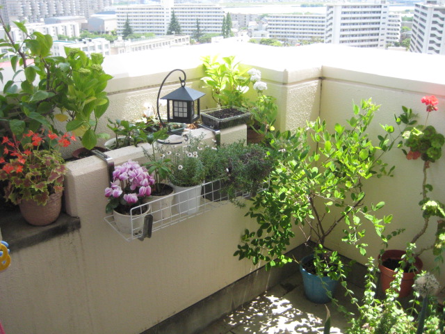 前の家では置く場所が割とあちこちにあったので、野菜やハーブ類を結構育ててたんですが、今度はスペースが前以上に限られていることもあって、野菜類はちょっと控える予定…が、結構持ってきたプランター類に種が落ちてたらしく、今年はあちこちから出てきた水菜やシソを植え替え他のを育ててましたね(苦笑)多年草のハーブは一番よく使うオレガノとローズマリーだけで。一年草はバジルと、前の日記にも書いたホーリーバジルは撒いてみる予定です。