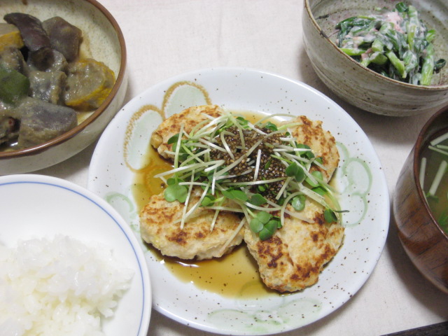 - 05/28 昨日の夕飯(5/27):鶏つくねバーグのチアシードソースがけ他