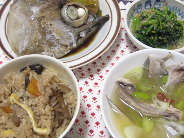 ああ、煮つけは長ネギと牛蒡を一緒に煮ました。頬や頭周りについた肉は意外とたっぷりあって、締まっていてこれも美味しかったですねー。