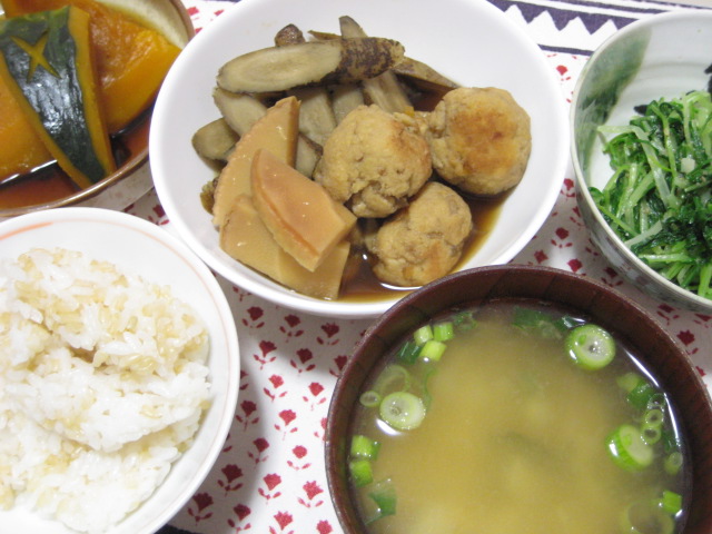- 04/23 昨日の夕飯(4/22):肉団子とゴボウの甘辛煮他