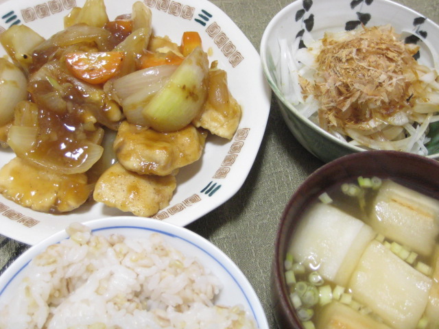 - 04/02 昨日の夕飯(4/1):鶏むね肉の甘酢炒め(サワーチキン)他