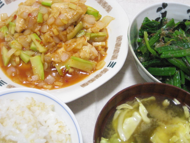 - 03/19 昨日の夕飯(3/18):鶏むね肉のチリソース炒め他