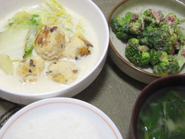 - 03/16 昨日の夕飯(3/15):白菜と鶏団子のクリーム煮他