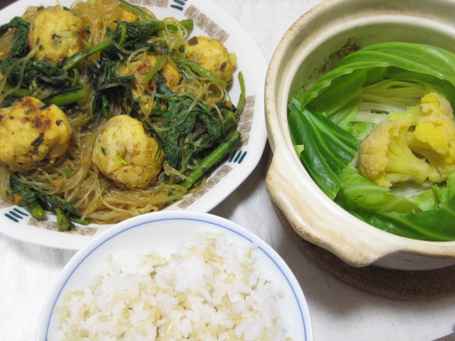 昨日の夕飯(2/24):【試作】鶏団子と春雨のカレー煮他