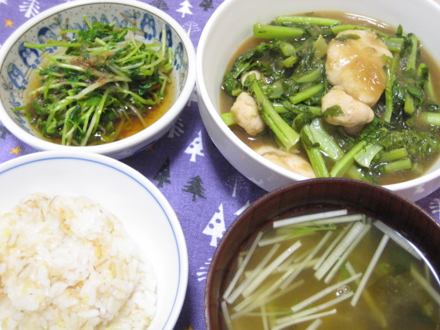 昨日の夕飯(12/6):じゃこと卵、小松菜の炒め物他