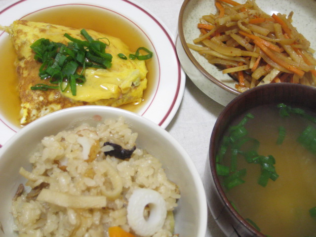 昨日の夕飯(12/3):干しキノコのかやくご飯他