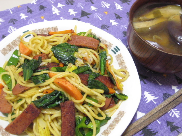 - 11/19 昨日の夕飯(11/18):スパム入りピリ辛焼きそば他