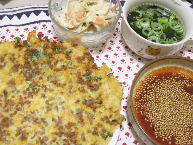 - 10/23 昨日の夕飯(10/22):挽肉のチヂミ他