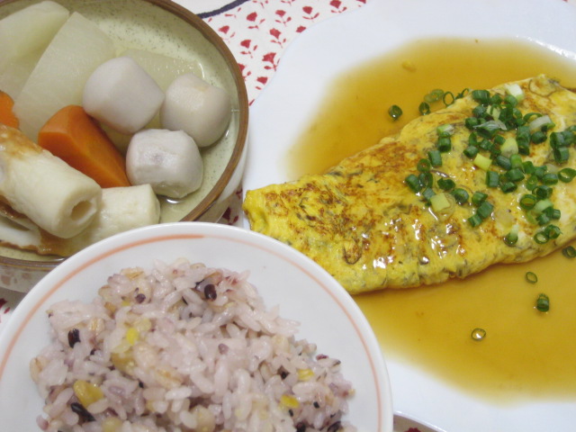 この日は貰い物のもずくがまだ残っていたので、時々やってる切り干し大根の卵焼きに具として混ぜてみました。沖縄方面でもずく入りの卵焼きがポピュラーだと、前にTVで見たので、折角だしやってみようとw前日にもずく酢をやってたので、かけるあんには酢は使わず、和風だしのあんかけにしてみました。卵の邪魔にもならず、美味しくいただけましたが、もう一個卵は使うべきだったかも…ちょっとまとまりが悪かったww