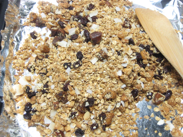 シリアルはグラノーラが好きなんですが、市販のものは結構値段が張る上に、量がそれほど入っていないので、もうちょっと気軽に食べられないものかと思い、先日一回目の試作をしてみたんですが、その反省を踏まえての二回目の出来上がりはこんな感じに。