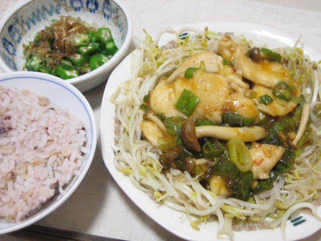 昨日の夕飯(9/14):鶏むね肉のチリソース炒め他