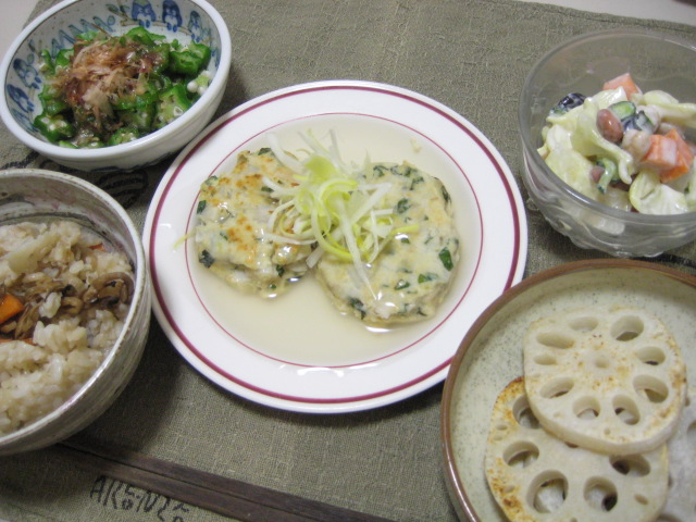 昨日の夕飯(8/25):レンコン入りつくねバーグの白だしあんかけ他