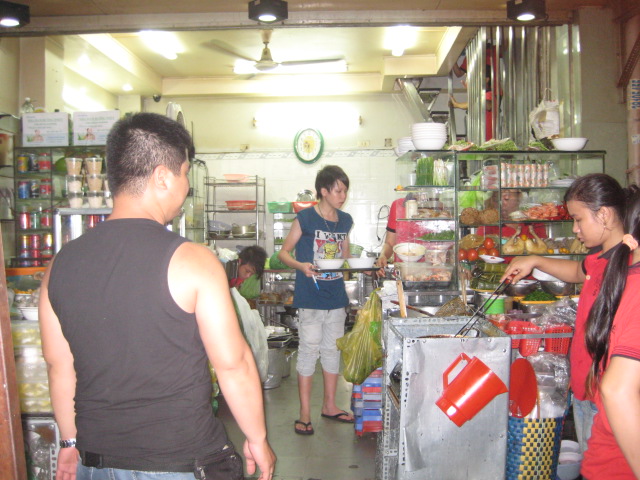 ここがそのお店「SOI GA NUMBER ONE」(SOI GAとはベトナム語で鶏おこわのことです)。お店はテナント三つ分にまたがってまして、一つが厨房専用。あとの二つが客席のようで、できた料理はそのまま外の歩道を歩いてもってゆくという、なんともおおらかな感じ(笑)