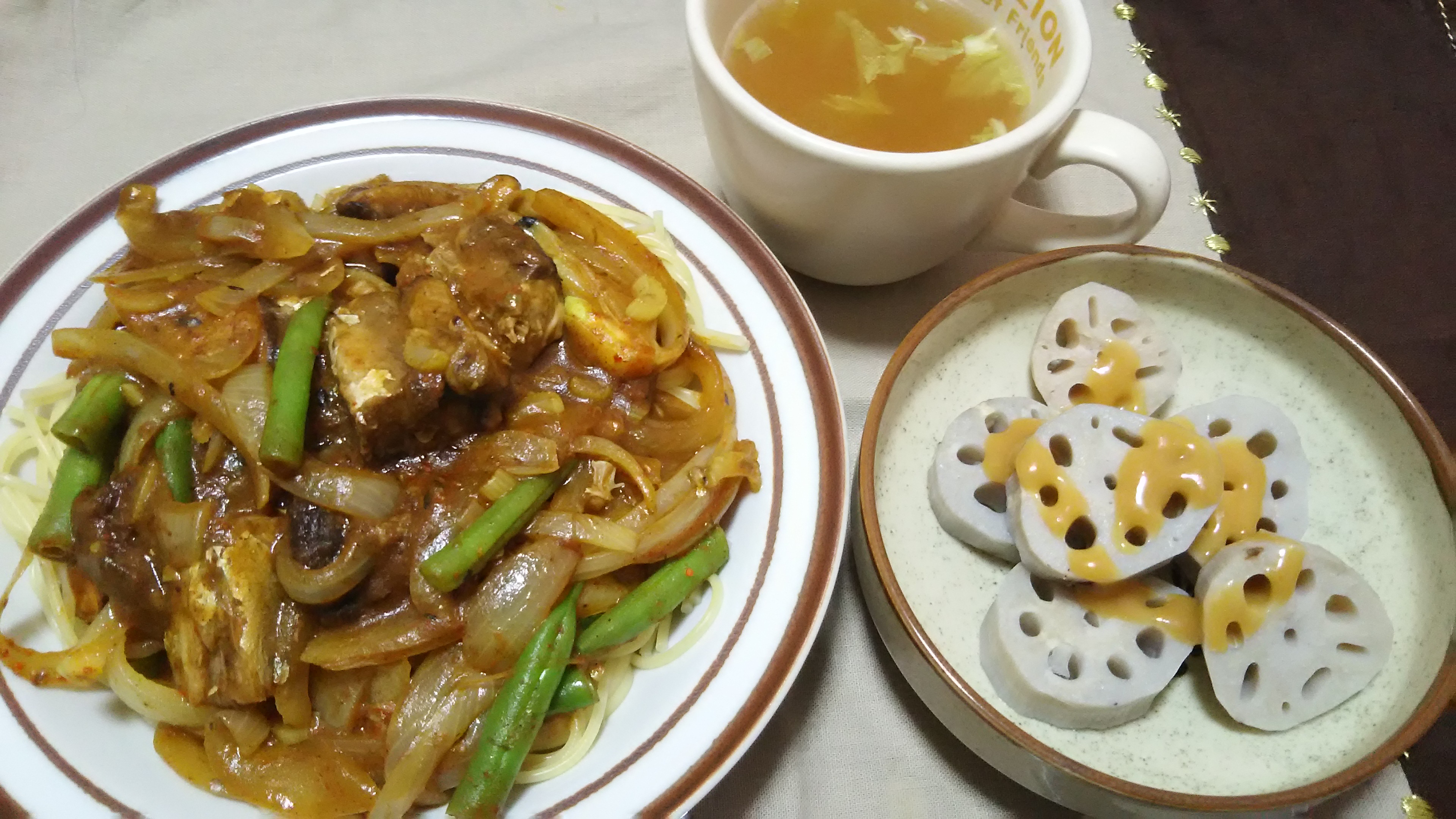 昨日の夕飯(2/25):鯖カレーパスタ他