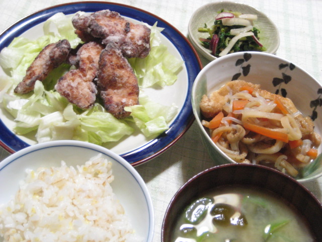 - 04/23 昨日の夕飯(4/22):鶏胸肉の竜田揚げ他