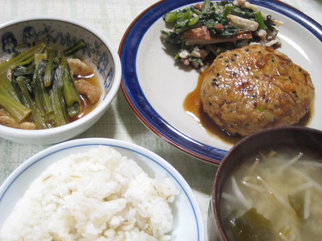 昨日の夕飯(3/11):照り焼きおからバーグ他