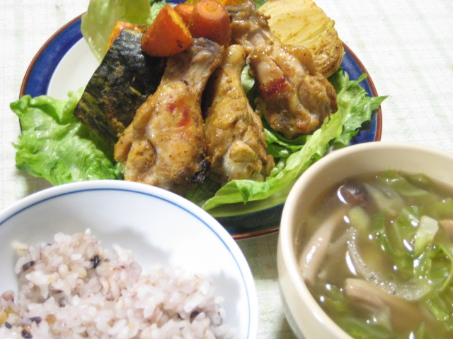 この日はタンドリーチキン&ベジ。前日に作っておいた液で材料を漬け込んでおいて、翌日は焼くだけなので、疲れていても作りやすいので助かります。