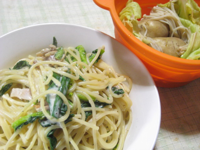 昨日の夕飯(2/19):菜の花とパンチェッタのクリームパスタ他