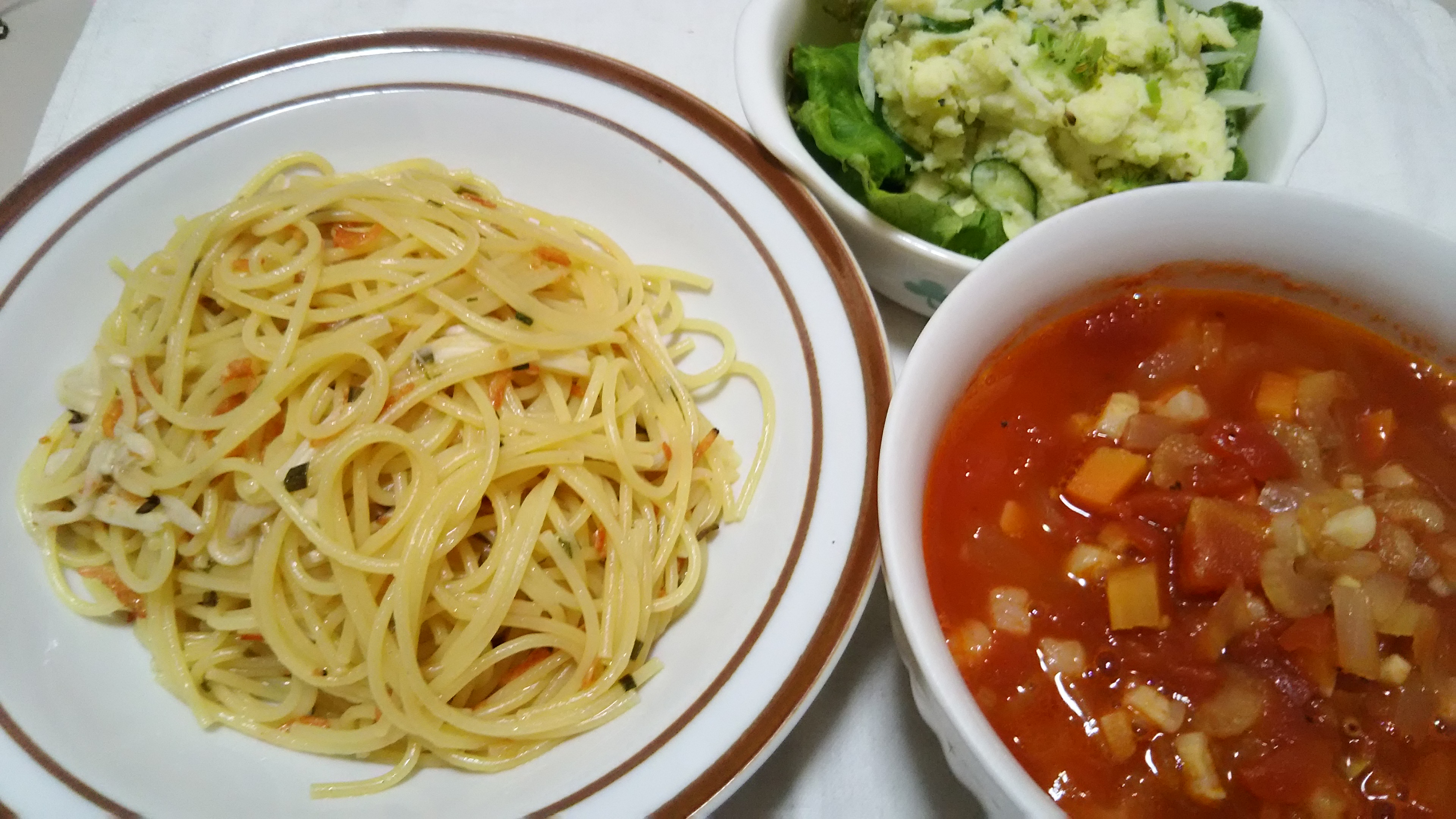 昨日の夕飯(2/16):エビ塩のパスタ他