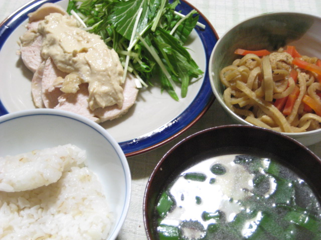 昨日の夕飯(1/26):茹で鶏の味噌豆腐マヨのせ他