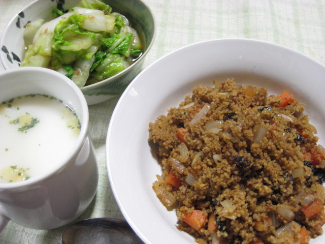 昨日の夕飯(1/30):クスクスのピラフ風他
