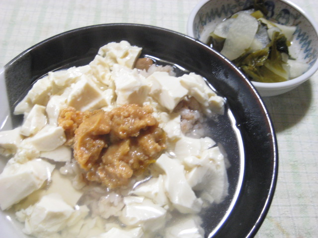 この日は帰りがちょっと遅めだったので、冷蔵庫にあるものを使って豆腐茶漬けを。こーゆー時間のない時の為に、鶏味噌はとっても便利ですわ。