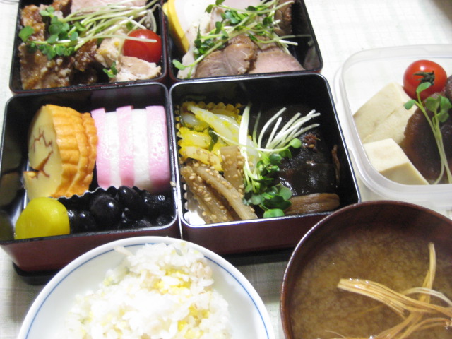今年は餅も購入してなかったので、雑煮は用意せず(家では毎年最低雑煮は用意するんですが…)。白飯と味噌汁だけつけました