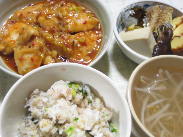- 01/03 昨日の夕飯(1/2):鶏胸肉のチリソース炒め他
