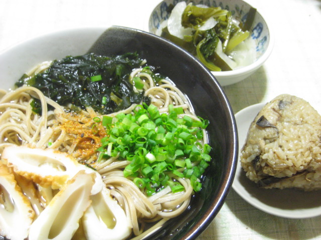 2013年の最後は、年越し蕎麦とかやくご飯のおにぎり、水キムチでした。