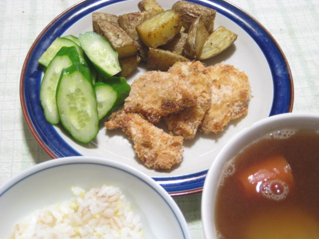 昨日の夕飯(12/19):揚げないチキンカツ&ポテト他