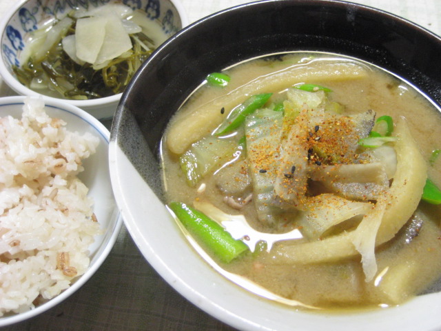 そんなこともあって、この日は豚汁に。具にはおから団子の生地をほうとう風にしたものを加えてみました。ボリュームがある割にカロリー低めなので、いいですね。