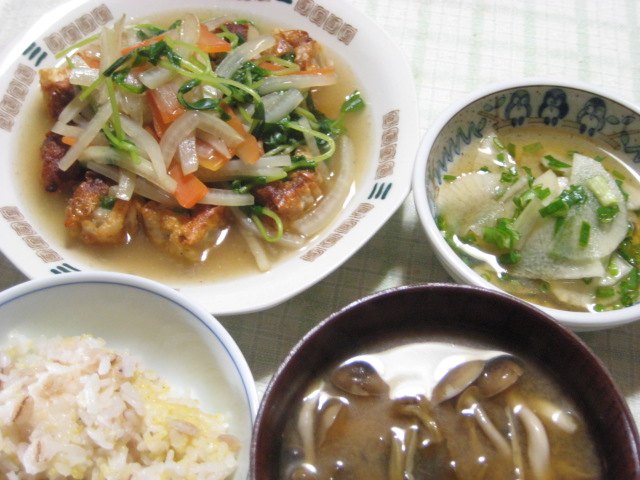 昨日の夕飯(12/10):揚げシュウマイの野菜あんかけ他