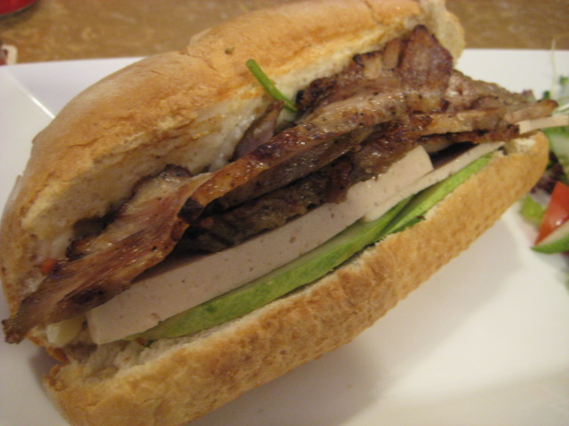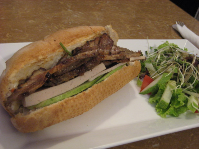 もうひとつはローストポークのバインミー。ローストポークの他、ハムなども挟んであります。これもお肉たっぷりですが、容易に噛み切れるし、味も好みでしたね~(どっちも欲を言えば、レモンとか振りかけられたら更に好みなんですが)。