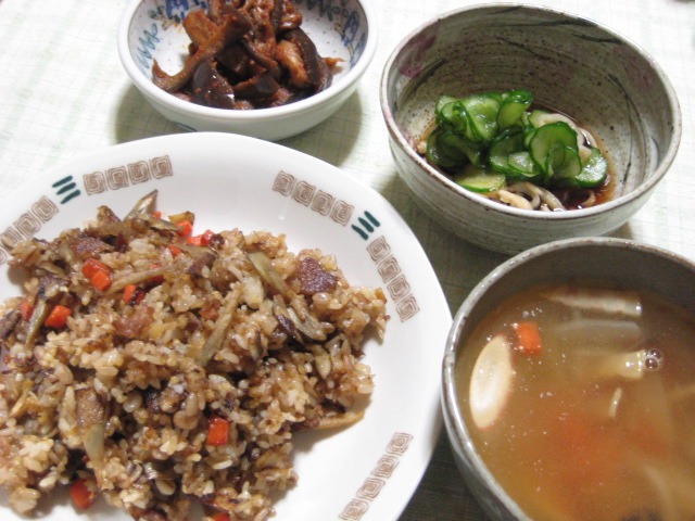 昨日の夕飯(10/15):ゴボウと豚肉のチャーハン他