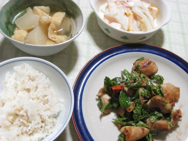 - 10/03 昨日の夕飯(10/2):鶏肉のバジル炒め他